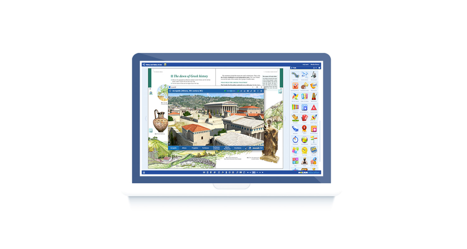I libri di testo digitali possono essere utilizzati sia per la presentazione in classe che per l'apprendimento a casa. Possono essere aperti in mozaBook , nell'app mozaBook, online o su mozaWeb in un browser. Moziak offre numerosi libri digitali nel negozio online, ma gli utenti possono anche creare facilmente i propri libri interattivi.